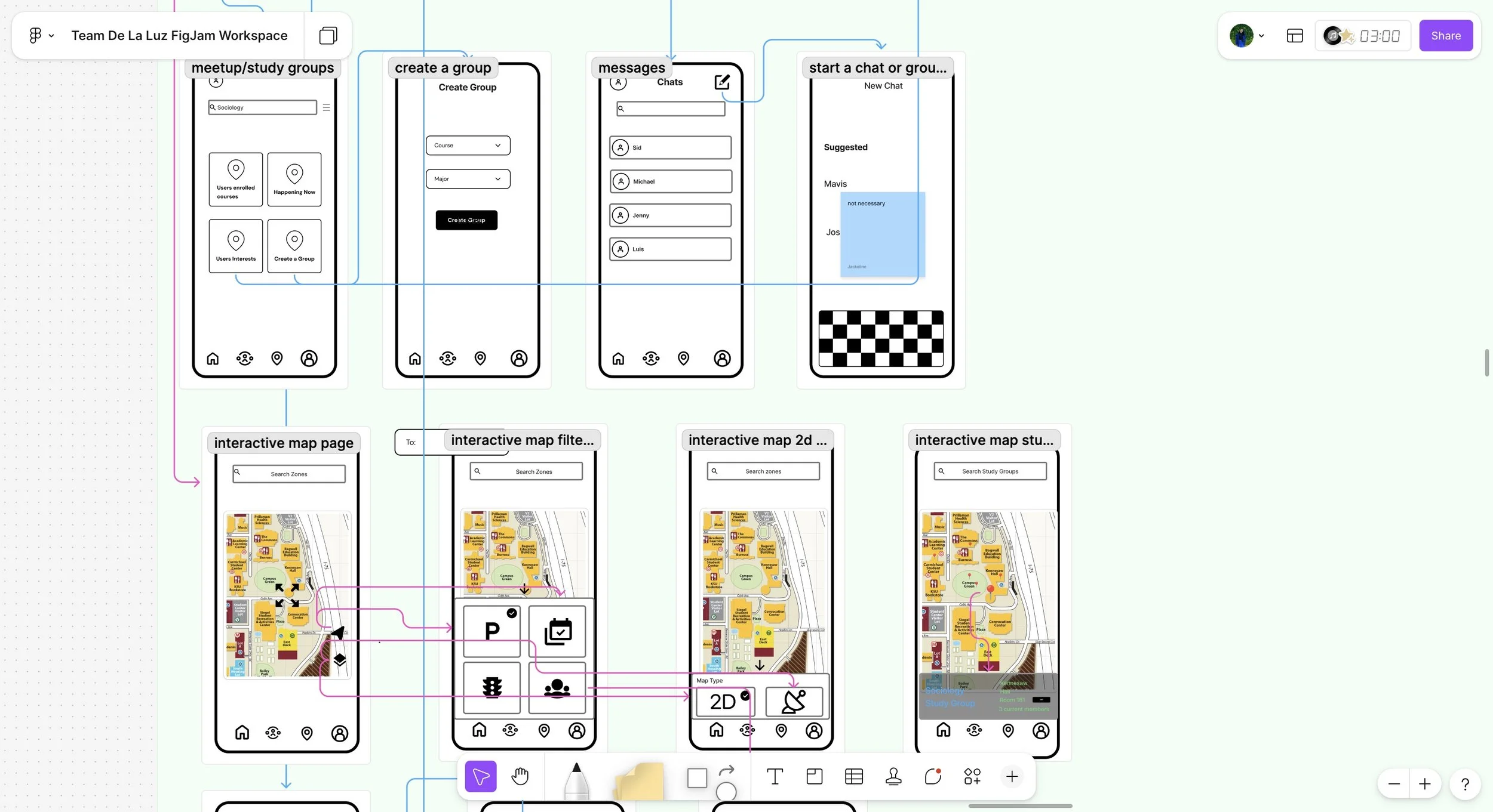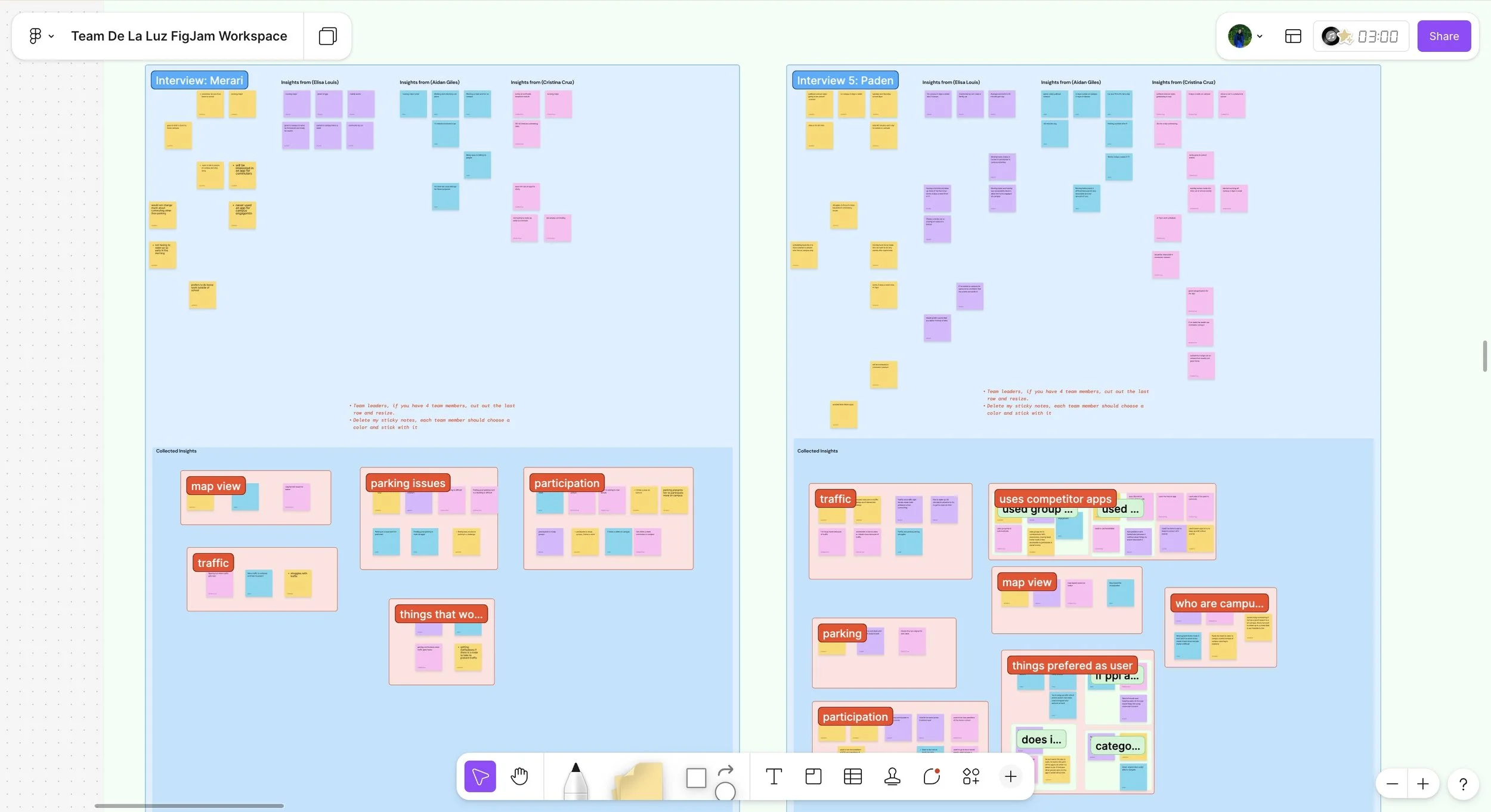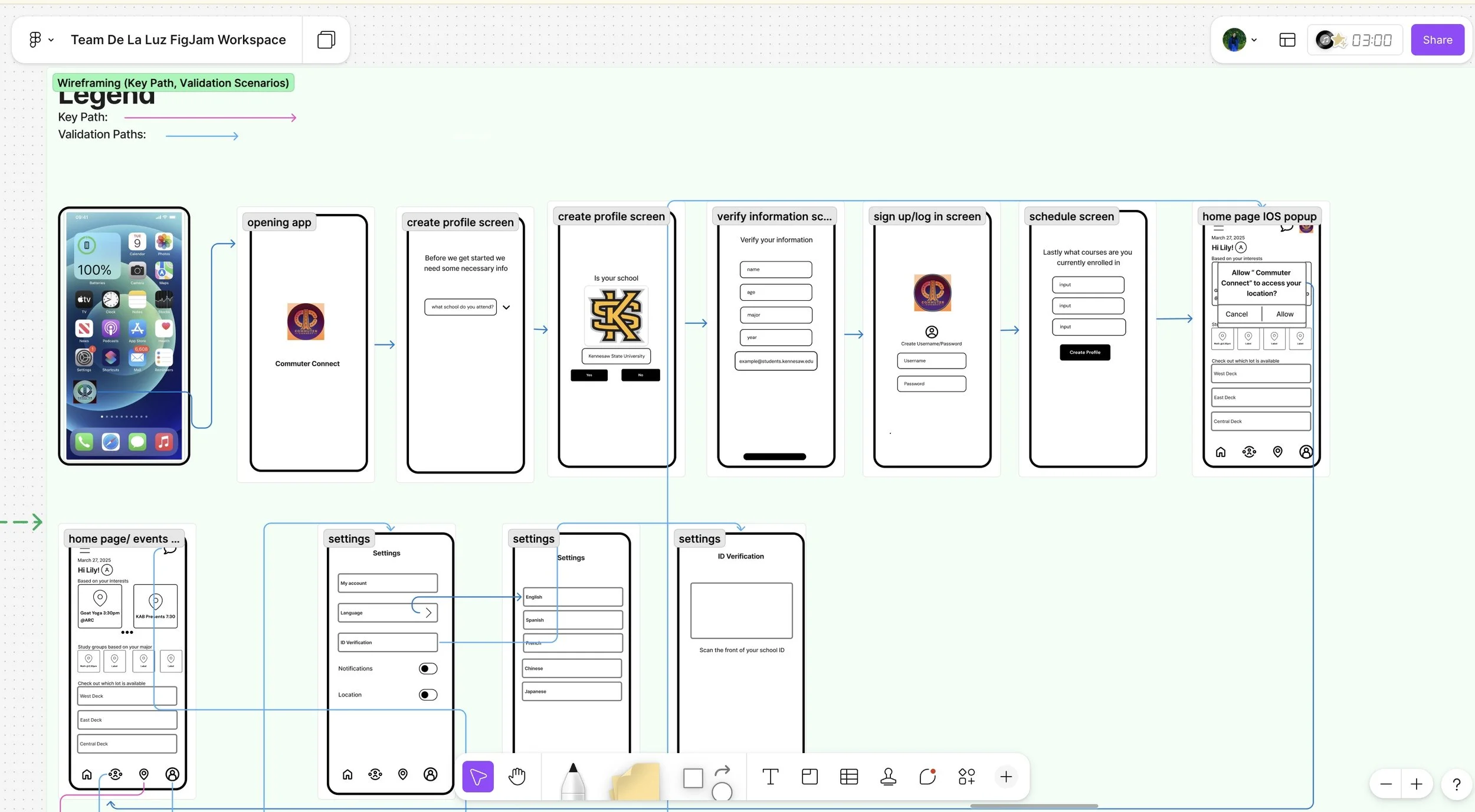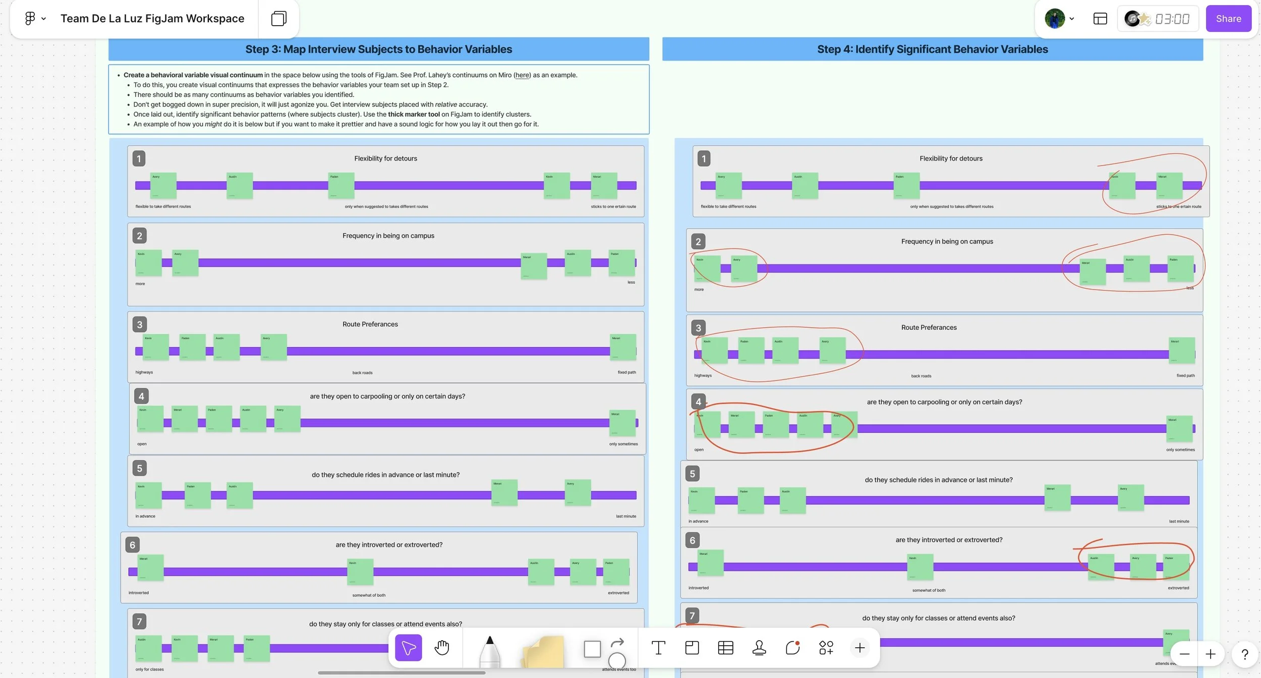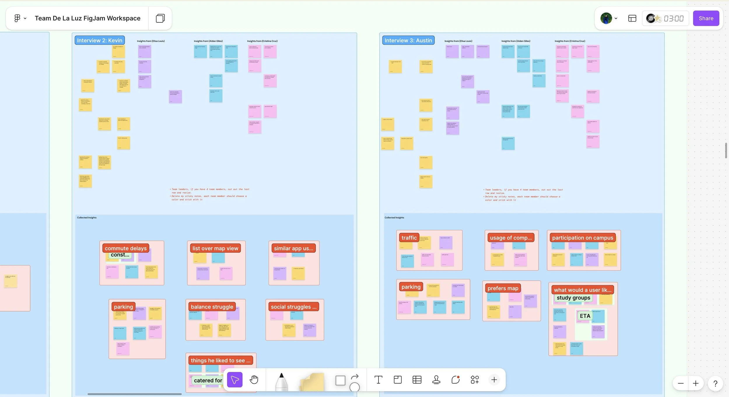 Using FigJam, we mapped interview participants across behavioral variables to uncover patterns in commuting habits. These clusters informed our primary personas and validated which user goals—such as efficient parking and connection opportunities—were most significant for design decisions.