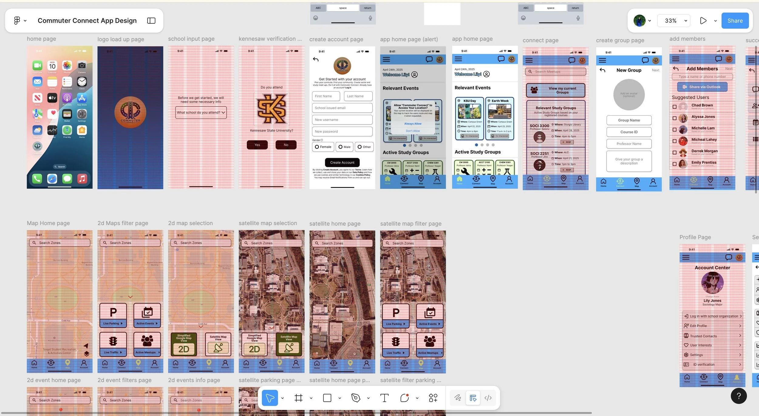Commuter Connect improved task efficiency for student commuters and demonstrated the importance of goal-driven, collaborative design. This project strengthened my leadership and reinforced my ability to translate user goals into functional, user-centered interfaces. My team and I created 47 frames to really bring commuter connect to life.